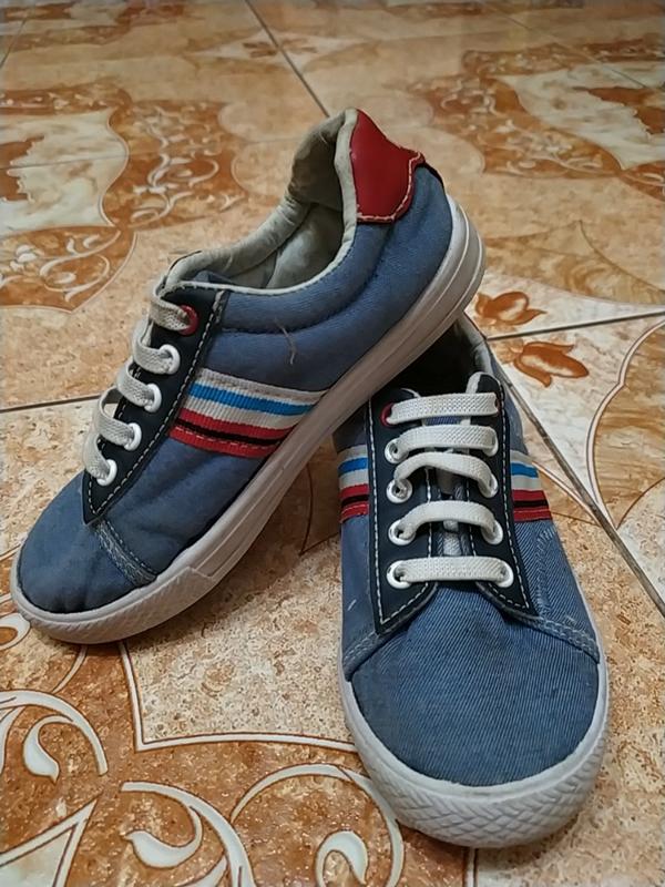 джинсові кеди, шнурки-резинки, син ходив декілька раз. Виросли з них