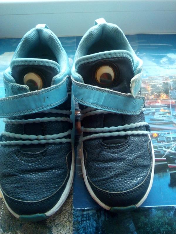 Детские кроссовки. Состояние нормальное Замши синие голубые. Спереди голубая резинка. На ли пучках Длина подошвы 22 см. Белая подошва.