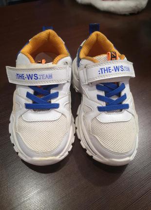 Рощмір 27, по стельці 17.5, легкі та зручні, жовте спереді на тканині забереться після прання в машинці ( перевірено неодноразово при забрудненні на вулиці любих плямок)