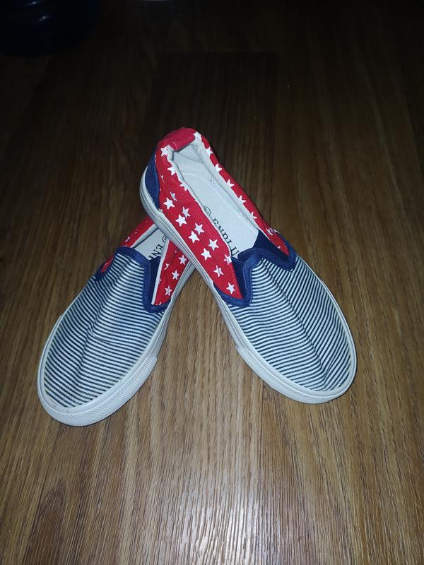 повністю нові, на носках де смужки трошки висвітлились бо були на вітрини, не замітно стелька 18 см