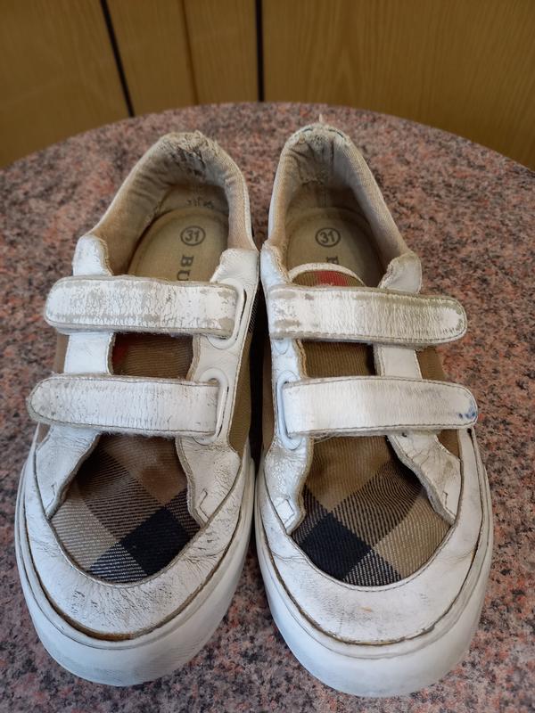 кеды от Burberry в хорошем состоянии. Из дефектов на заднике есть потёртости, цвет кожи вытерся, . липучки работают хорошо. размер 31