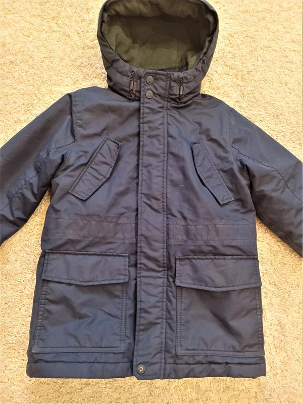 Курточка надзвичайно гарно продумана. Все закриває тіло дитини, і шия і утеплена дуже гарн,і на рукава манжети . Фото роблено максимально з вспишкою щоб показати яка вона є. Колір наповнення підкладка все чудово. Є подряпина на кармані і на попі є потертості, але так як на фото їх невидно, я показала максимально щоб було видно. І ще на фото вона не прана. Підійде на холодну осінь весну і теплу зиму. Була опушка, знято і її немає в наявності. Довжина -59см, ПОГ-46см. рукав-50см. від шиї рукав-59см