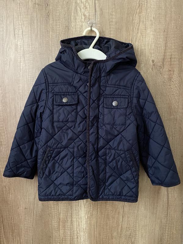 Практична стьобана курточка, легкий слой синтепону, тепліша за вітровку. 2-3 роки і довше, ми одягали і в 4. довжина - 42, пог - 34, рукав - 34 від плеча, курточка в ідеальному стані, без будь-яких дефектів
