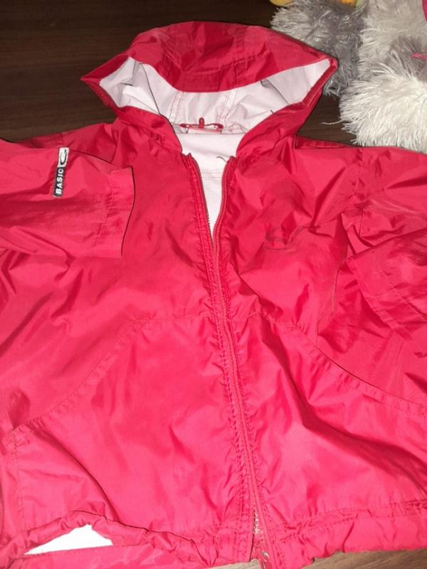 вітровка+трикотажна кофта,яку можна відстібати і носити самостійно,манжети на липучках, заміри за запитом із недоліків,на кофті колір трішки вистірався підійде як хлопчику,так і дівчинці