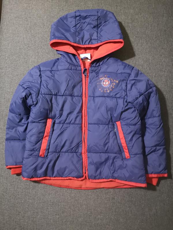 Куртка Spiderman на плотном синтепоне. Носили как демисезон, но до - 5 в ней точно будет комфортно. Рукава на резинке. Внутри подкладка флис. Капюшон не отстегивается. Замеры: Рукав от плеча 39 см длина 45, спинка полукругом на 4 см длинее, ширина подмышками 40 см. Надпись частично стерлась, но она изначально не была чёткой, в стиле полустертого рисунка.