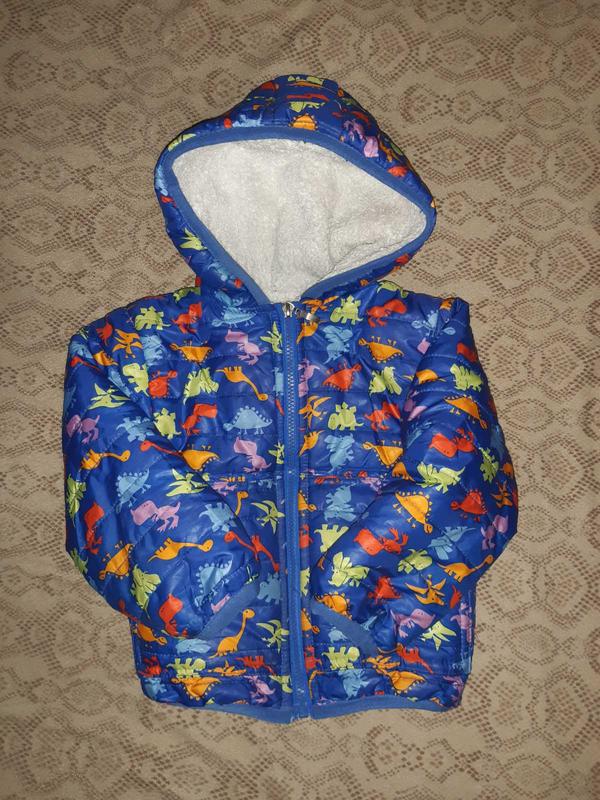 Куртка на мальчика синего цвета с динозаврами,с утеплителем Состояние хорошее,но на рукавах на манжетиках катышки,на фото показала Примерный возраст 3-4 года Замеры: Длина 39см Ширина 34см Длина рукава от плеча 36 см