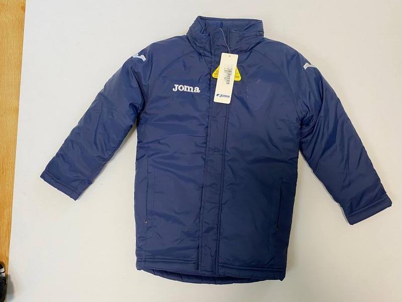 Новая теплая куртка Joma на 4 года. Испания. Компания производит спортивную одежду для национальных сборных Украины. Синтетический наполнитель. Заводской дефект (смотри первое фото): отклеилась или не нанесена эмблема клуба. Исправляется очень просто и не дорого. Состояние: Новое. Замеры: Длина 52-59 Плечи 43-44 ПОГ 41 Рукав 42 Длина по спине 64