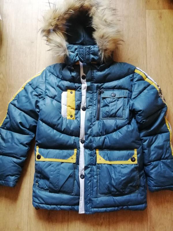 Зимняя удлиннёная куртка Bilemi р.140 на бирке, но в реале большемерит на размер. Состояние очень хорошее. Внешний материал - полиэстер 100%, внутренняя подкладка - полиэстер 100% , гипоалергенный утеплитель - тинсулейт. Съемный капюшон, с натуральным, отстегивающимся мехом. В рукавах трикотажные манжеты. Куртка очень тёплая. Внутри есть термометр, на котором показывается температура в куртке. Нюансы - на карманах есть кнопки, они исправные,но от 2шт. отпали шляпки. Замеры: длина по спинке - 65см, ширина по груди - 49см, длина рукава - 55см.
