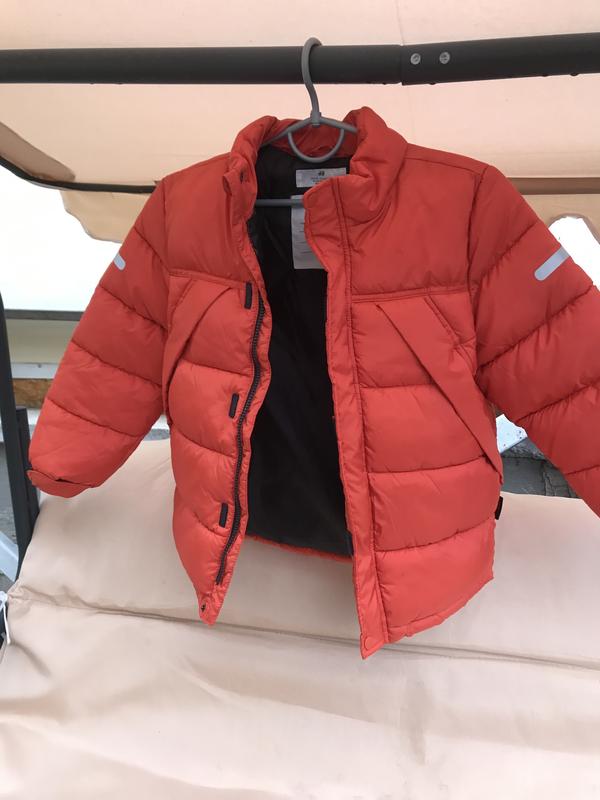 Стьогана куртка з водовітштовхуючоі тканини. Легка. З високим м’яким комірцем і блискавкою спереду із захистом підборіддя та вітровий клапан для кращооо захисту від вітру та негоди. Приховані кишені на липучках та світловідбиваючі елементи на рукавах та ззаду. На рукавах є липучки для регулювання. Ззаду трохи подовжена. більшомірить.Вік 6-7 але реально 8-9. Заміри : Довжина 50; півобхват -36; рукав -45