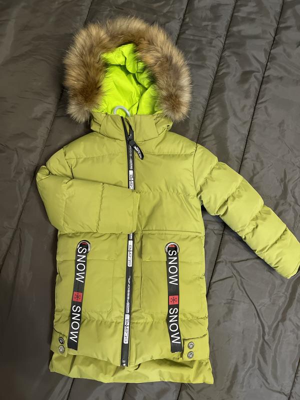Куртка тепла зимова на худенького хлопчика, довжиною буде до колін. Розміри: довжина рукава від плеча - 37 см, ширина коло грудей - 39 см, довжина по спинці - 57 см. Виробник пише на 2 рочки. Ми носили 3-4, залежить від дитини