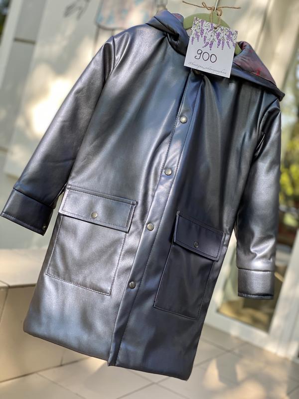 Детская парка,з экокожи,переливаэт, на вискозном подкладе, утепленная слимтекстом, застегивается на кнопках, с капюшоном, дополнена манжетами