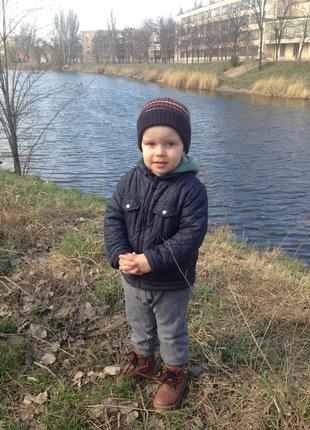 Темно-синяя стеганая куртка внутри на флисе. был капюшон, но к сожалению потерян. сезон носили без капюшона. теплая, удобная, симпатичная.