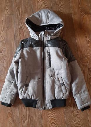 Куртка демі, стан нової. комбінова кожзам. 134/140р. Капюшон зьемний.