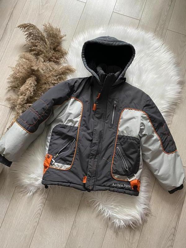 Фото на тілі нема Застібається на блискавку і липучки) Є капішон текстиль з хутром) Наповнювач незбитий зимній) Фасон вільний ) Бірок нема -підійде на 7-9 років оріентуйтесь по замірам) У складі коттон поліестер) Продається так як є без повернення і без притензій) Довжина 53 см) Плечі 42 см) Рукав 46,5 см) Пог 50 см) Пот 50 см) Знизу 47 см)