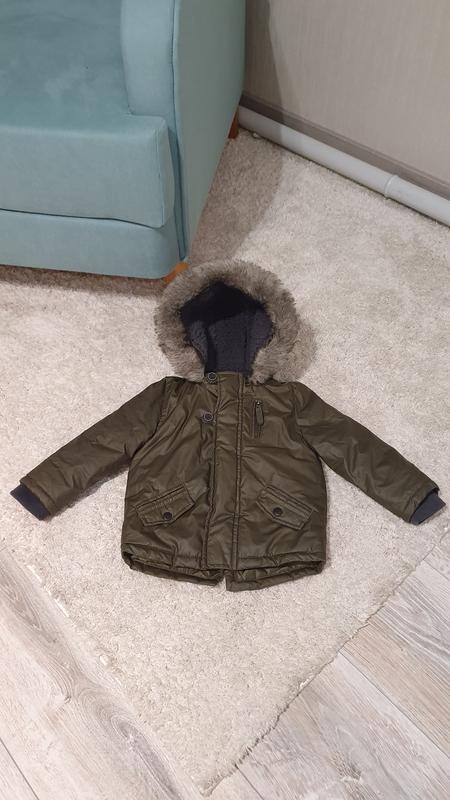 Куртка детская 12-18 м, для мальчика F&F Водонепроницаемая, теплая, демисезонная. Цвет - хаки. Стан - идеальный
