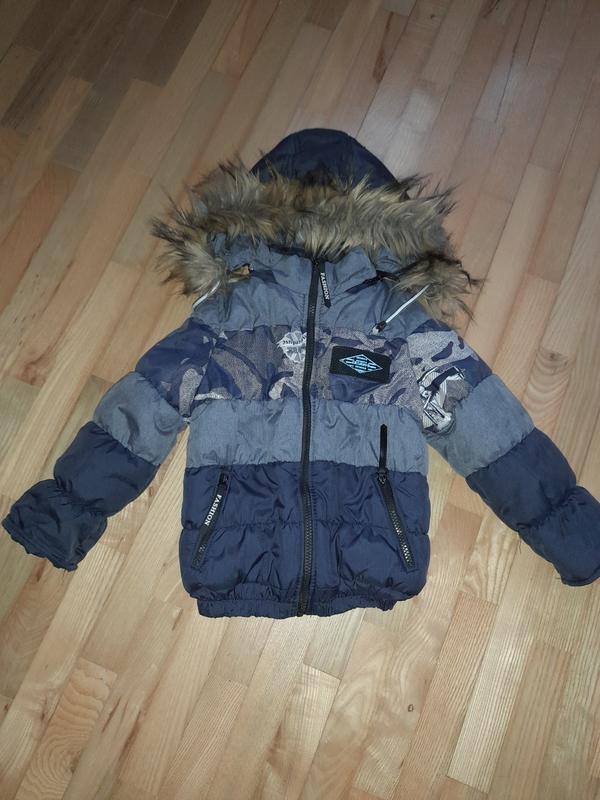 Куртка дитяча зимова на 3-4 роки. Може бути на холодну весну або осінь. Знизу на резинці. Капюшон відстібається.