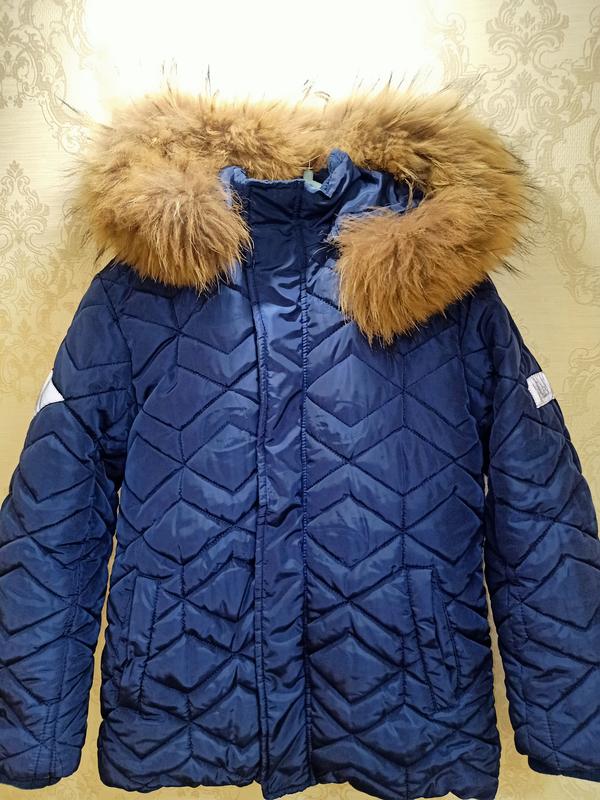 Куртка в хорошем состоянии, хорошем качестве. Подробные замеры на фото. На рукавах вручную нашла светоотражающие ленты, которые при желании можно легко отпороть. Спереди еще были большие петли с пуговицами, но мой ребенок не полюбился те петли - пришлось отпороть. В целом курткой очень радует. Воротник и манжеты на рукавах - трикотажные. Подкладка - флисовая, в рукавах - нейлон. Воротник и мех на нем отщекаются на замке-молнии. Мех натуральный, очень густый и мягкий. К этой куртке имеет на продажу зимние термо сапожки 32 размера в такой же цветовой гамме (смотритесь в ко мне магазине)