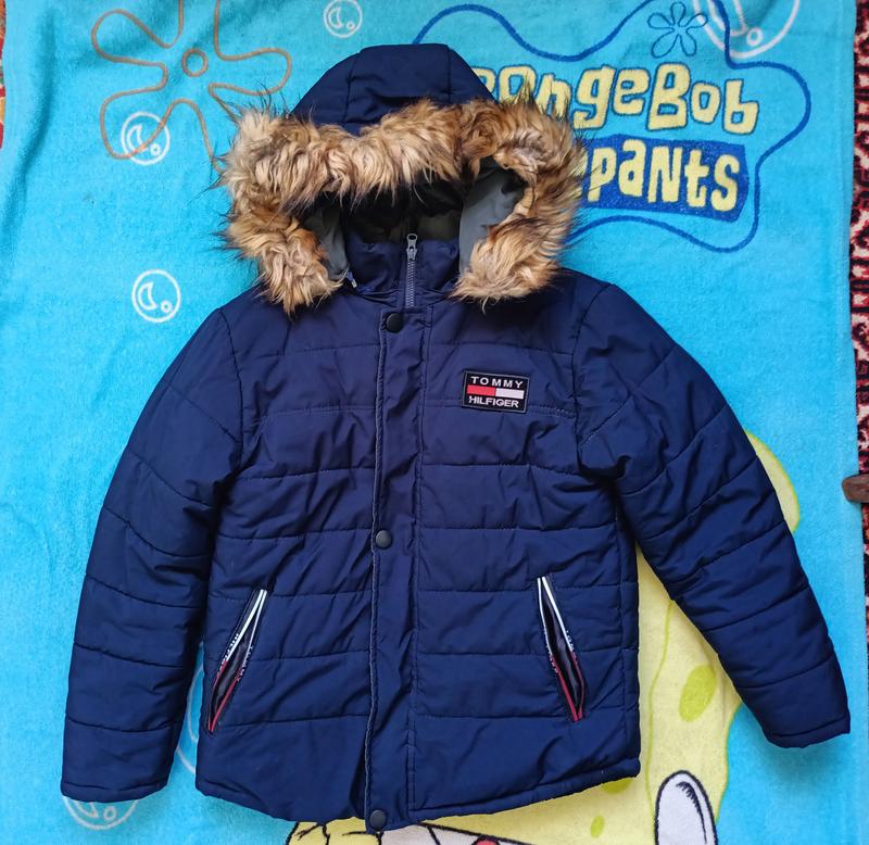 Зимняя куртка на мальчика. В хорошем состоянии. Капюшон отстегивается, мех нет. Есть небольшой дефект на карманах на молниях нет бегунков, и отсутствует кнопка снизу видна на фото. Длина 62 см, рукав 54 см, ширина 54 см.
