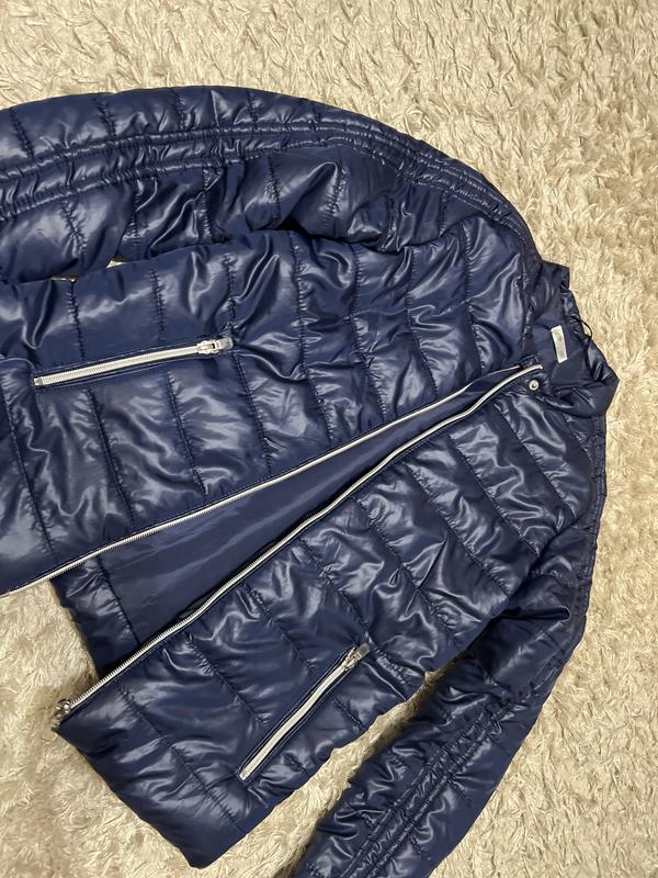 Стильная синяя куртка темная не марка качественная пошив стильный, одита один раз Почти новая из заграницы На 12 лет