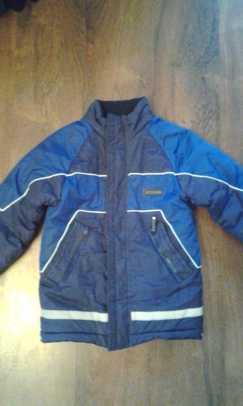 Продам зимнюю куртку на синтепоне на ребенка .Капюшон потеряли.Состояние хорошее. Рукав реглан длина от шеи 56см.длина по спинке 55см.Ширина внизу 41см.Ширина в груди 40см.По бокам карманы на молнии.Подкладка флисовая,рукава манжеты.