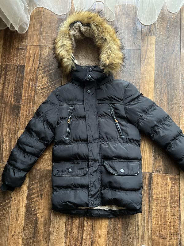 Очень теплая зимняя куртка на мальчика. Размер 6 лет (134). Цвет черный. Куртка идет удлиненная. Стан идеален, дефектов нет. Носилы очень мало, потому что быстро вырос. Замеры: Рукав - 54 см Длина по спинке- 66-67 см Плечи- 36 см Полуохват груди - 43 см