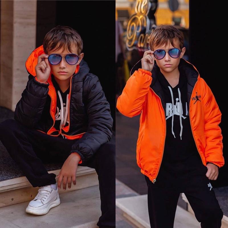 №2206 Стильная двухсторонняя !!! демисезонная курточка "Jordan" Цена - 760 грн Размеры-110-116,116-122,122-128,128-134,134-140,140-146 Ткань - плащевка, наполнитель силикон 150 Двухсторонняя куртка с капюшоном на змейке, на обеих сторонах карманы Принт- накат
