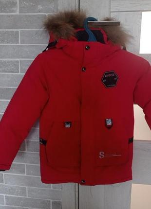 Зимова дитяча куртка ,дуже тепла,з натуральною опушкою.Стан загалом видно на фото ,дитина відносила 2 роки.ПОГ 45 см,плечі 43-44 см,довжина 67 см.