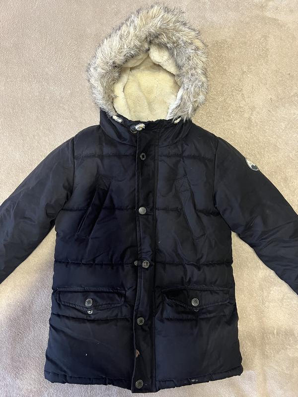 Дуже крута, тепла куртка next. Стан дуже гарний. Довжина 54см. Рукав від плеча 45см