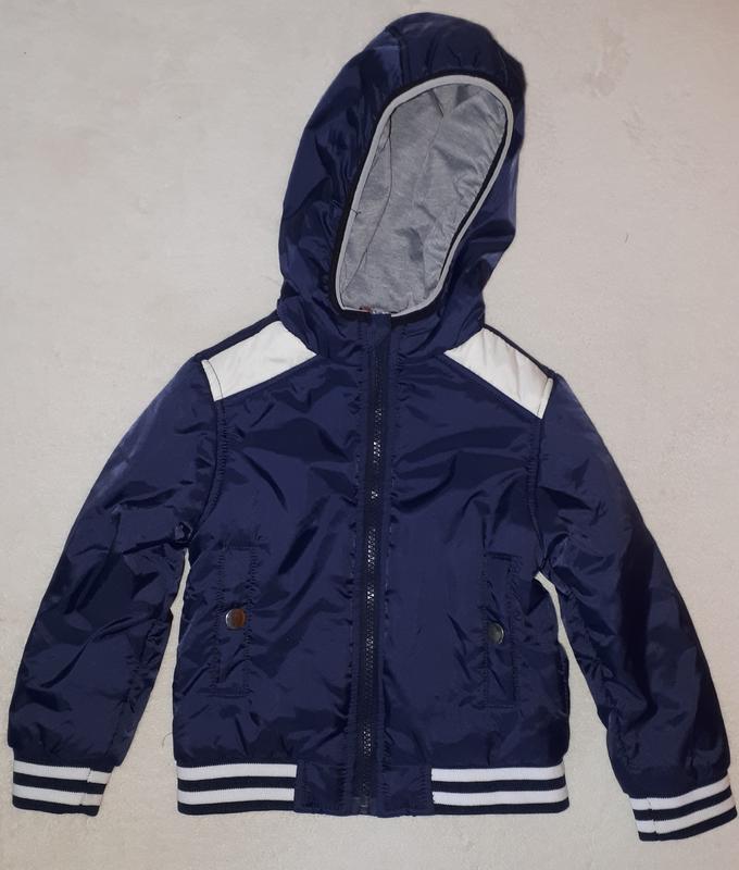 В отличном состоянии.Дэффектов нет..Нажаль незначительной бренд производителя, гаджет бирки срезали.Та это не Украина.Куртка качественная.На ребенке стильно смотрится.Рукав с мандетом 34см,Длина 36см.,ширина 30см