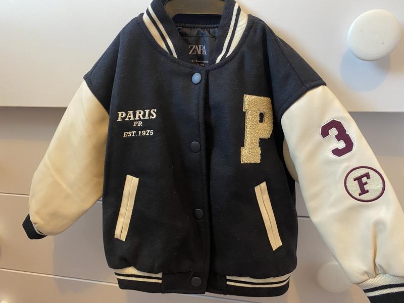 Куртка-Бомбер с рукавами из искусственной кожи, круглым воротником на резинке. Застегивается на кнопки. Карманы спереди и махровая нашивка на груди. Размер 12-18 месяцев 86 см.
