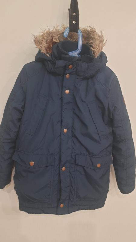 В очень красивом состоянии зимняя куртка на мальчика 7-8роков. Длина по спинке 58см, длина рукава с плечом 54см, ширина подмышками 45см. Дэффектов нет.