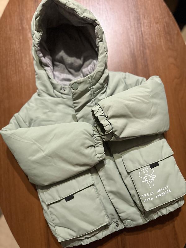 Утепленная куртка на осень- весну, приятного зеленого цвета. Стан - идеальный. Размер указанный 98, но маломерит на 92