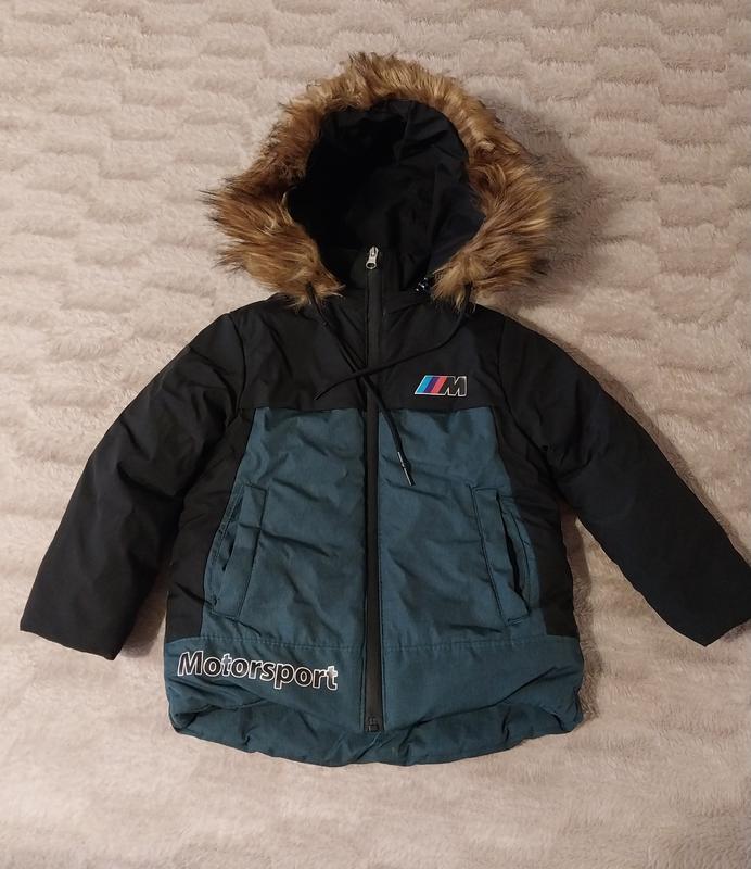 Куртка дуже тепла, на овчині. Ширина по грудях: 39см Довжина від плеча: спереду 43см, ззаду 48см Рукав від плеча:39см Нюанс на останньому фото (капюшон пришила в тому місці), в користуванні не помітно.