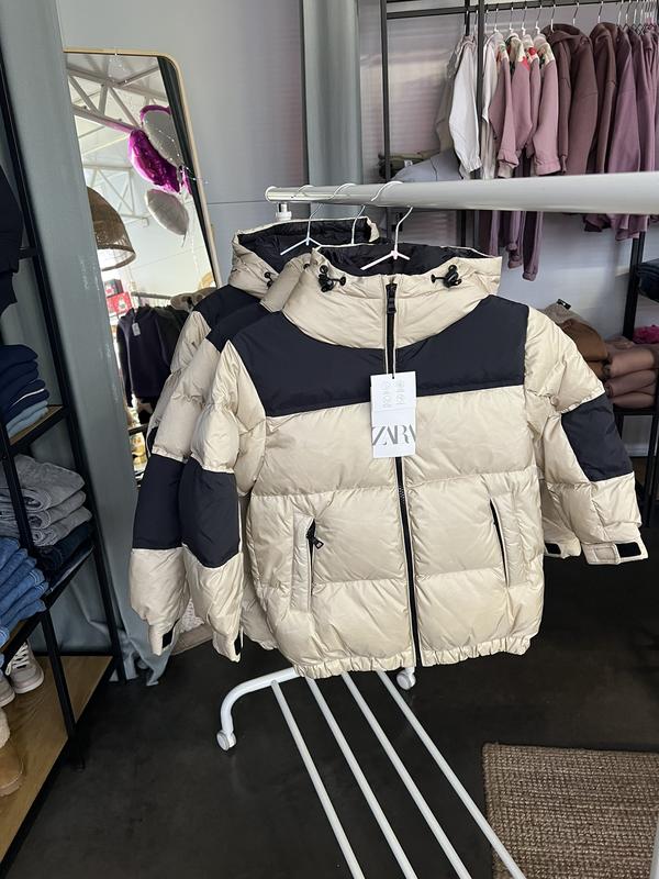 Пуховик/куртка Zara, по низу и на капюшоне стягивается, рукава на липучках, легкий и теплый пуховик.