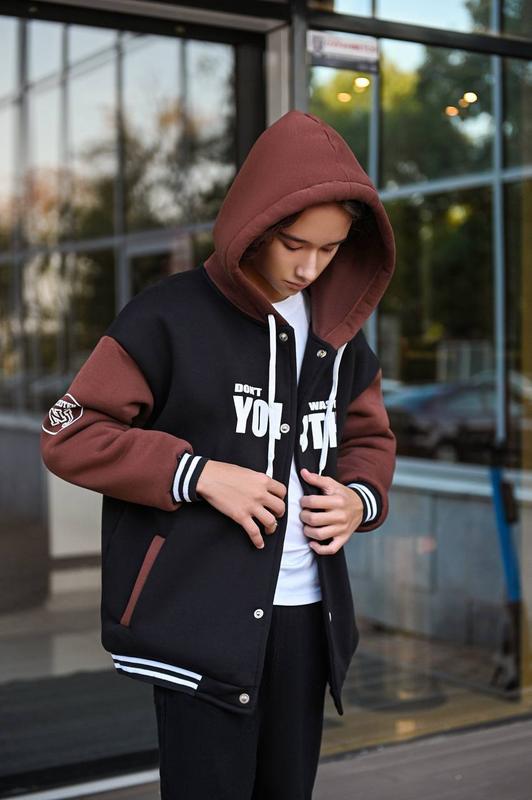 КУРТКА-БОМБЕР для підлітків ‼️№298‼️ Ціна - 1100‼️‼️‼️ Турецька хб тканина тринитка піньє з щільним начосом високої якості не линяє, не скочується. Куртка на теплій підкладці з наповненням холлофайбера щільністю 120г/м2. Високої якості пошиття. Слад: 85% бавовна, 10% віскоза, 5% еластан. Колір - чорний Розміри: 140-146,146-152,152-158,158-164,164-170, 170-176 Принт - шовкографія 💙💛💙💛💙💛💙💛💙💛