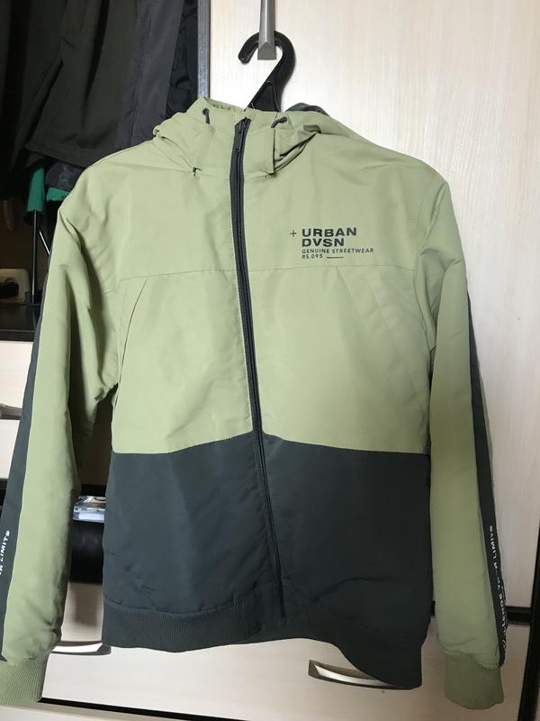 Фірмова класна та якісна курточка. На весну-осінь. Стан чудовий, носили кілька разів. Заміри: Рукав від плеча -57, від коміра 70 (разом з манжетом) Ширина під руками- 50-51 см Вся довжина - 61 см Куртка простого фасону з гладкого водонепроникного матеріалу. великий каптур низький комір-стійка застібка на блискавку принт спереду манжети на рукавах і штанинах на гумці наповнювач із переробленого поліаміду.