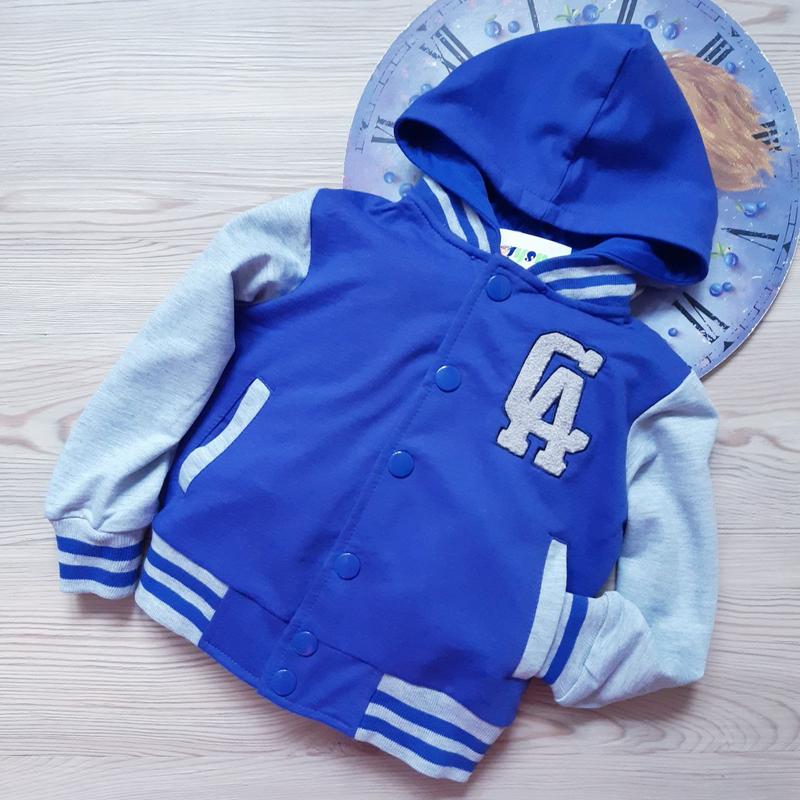 цена 390 грн Крутой бомбер с отстегивающимся капюшоном 😎 Застегивается на кнопки. Есть кармашки. Тканина: двохнитка Производитель: Венгрия👍 +/- 1-2см!!! ✔р.98- длина от плеча 37см/ рукав 36см/ ПОГ 34см- 1шт