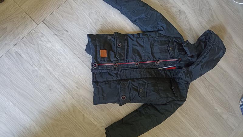 Куртка демисезон на зріст 140 см, темно синій колір, прямий крой,, з капюшоном , застібається на блискавку, та планка на гудзиках, ПОГ 38, довжина 60