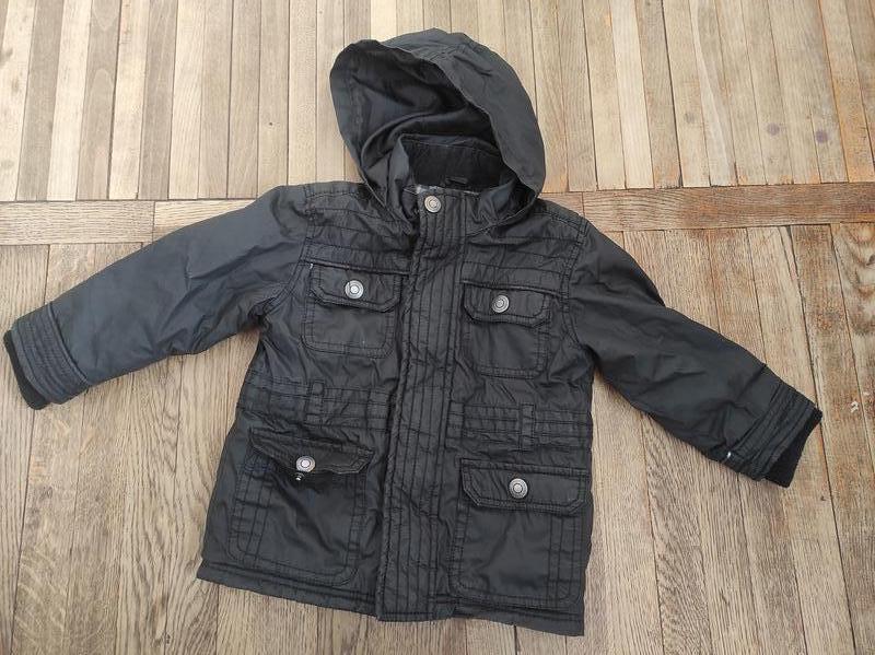 Куртка весна/осінь, водовідштовхуюча тканина, капюшон можна заховати в комір. Детальні заміри на фото. Недолік: ворсини на липучках (видно на фото), на користування не впливає.