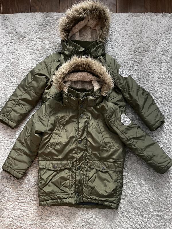 Зимние куртки НМ. Очень теплые, качественные в идеальном состоянии. Цвет - хаки. По наборке - 122 см, 6-7 лет. Заміри на фото. Цена указана за 1 куртку. На одной куртке есть маленькая затяжка, ее видно как присмотреться (последняя фото) - цена этой куртки - 500 грн.