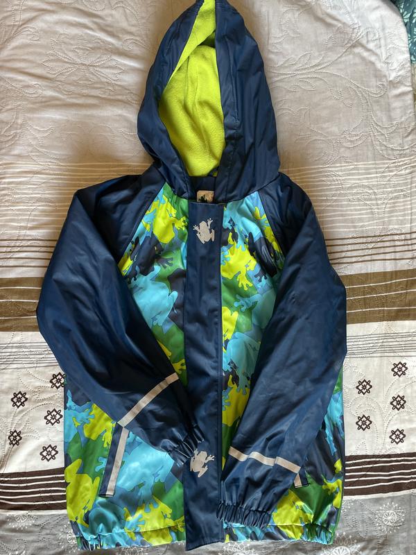 Утеплена підкладкою із синтепону куртка дощовик. Стан нової, одягали декілька разів. Яскрава, гарна, має світловідражаючі елементи.