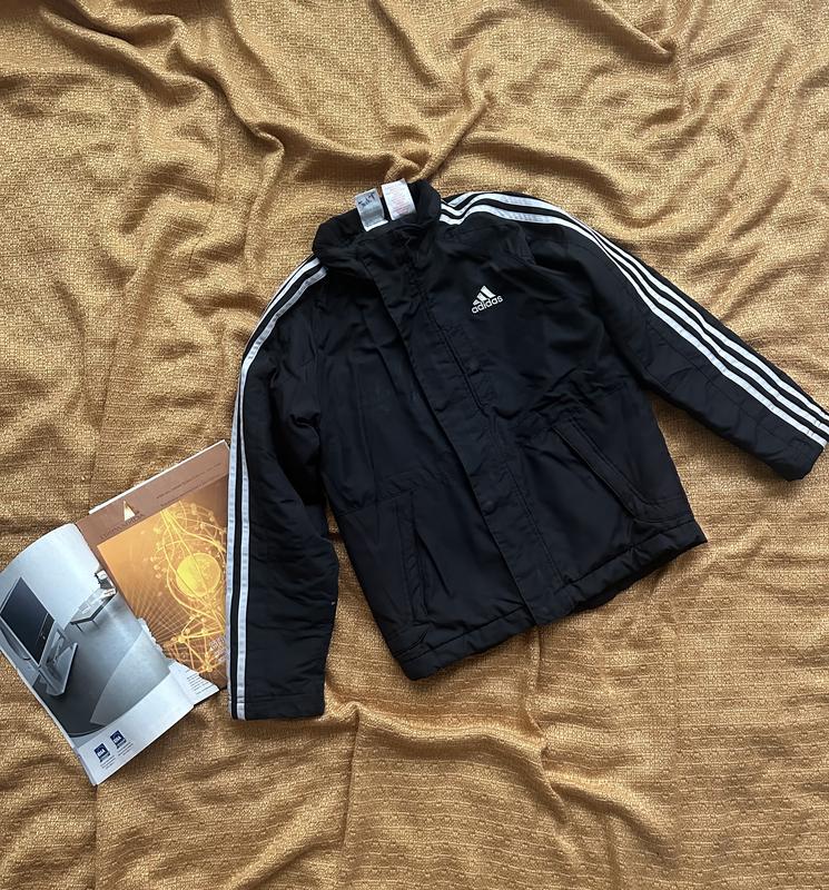 Стильная детская курточка от adidas: Фасон свободной стандартной длины/ Наполнитель средний, подойдут в межсезонье или в теплую зиму/ Подойдет на 8-10 лет/ Длина 55-56 см/ Рукав от воротника 63 см/ Пог 47 см/ Пот 45 см/ Знизу 43 см/ С нюансов-спереди пятна от порошка,и нет капюшона/ Продается без возврата/