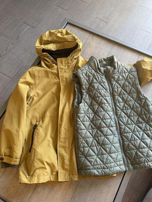 куртка 3в1 Mango Размер 128 см ( 8 лет) Дождевик + жилет Стан - идеальный Куртка с капюшоном Длина по спинке 60 см НОГ 42 см Руковая от плеча 48 см Жилет Длина 51 см Ширина 39 см Цена 680 грн