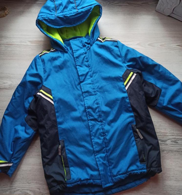 куртка на мальчика в идеальном состоянии, но есть не значительный нюанс ( смотрите последний снимок) на рост 128 см. длина 56 / 60 см. рукав 47 , 5 см. ПОГ 45 см. снизу стягивается, на перчатках есть регулирующие липучки.