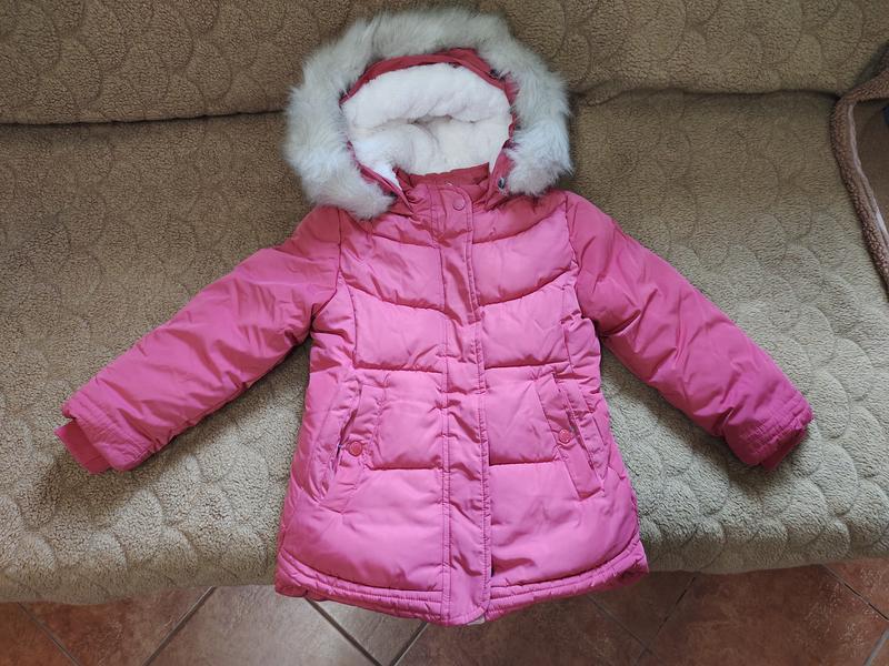 Теплая зимняя фирменная курточка в очень хорошем состоянии, длина 51см, ширина 39, длинна рукава от плеча 42см. Размер 5роков 110см