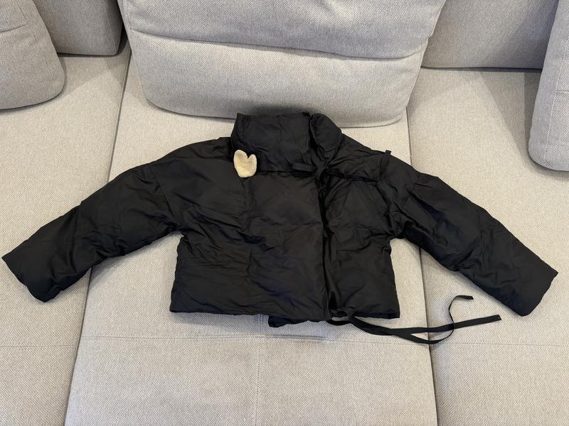 Куртка короткая на двувах веревках, внизу и сверху, наполнитель не памчужный.Носила и зимой но с маленьким минусом.Бренд украинский