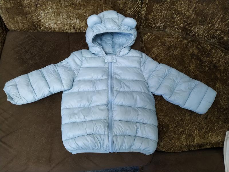 Детская куртка, голубого цвета, капюшон с ушками, демисезонная, с утеплителем.