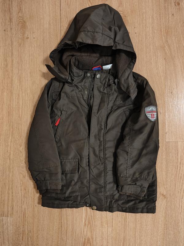 очень классная куртка, попугай прикрывает, удобные манжеты, была наша любимая. не пожалеете. темно-коричневого цвета