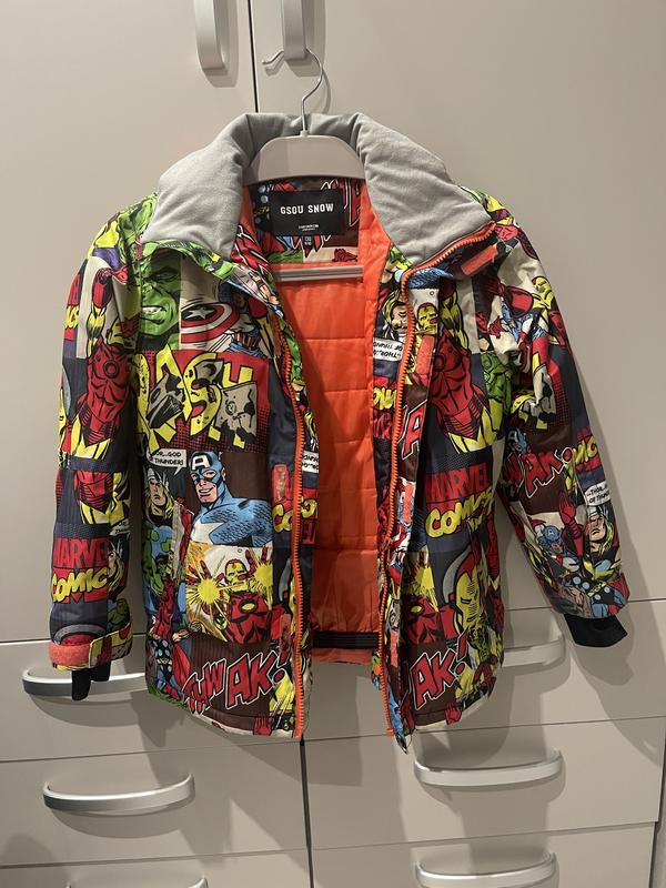 Куртка зимова, яскрава, легка але тепла. Можно и в качестве горнижного применения. На 130 мы, 9-10 лет