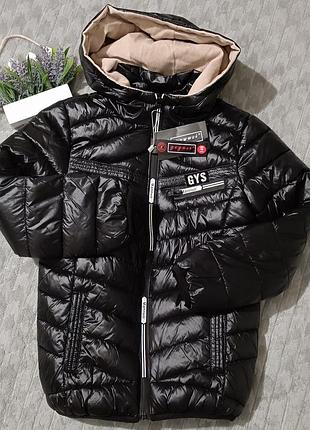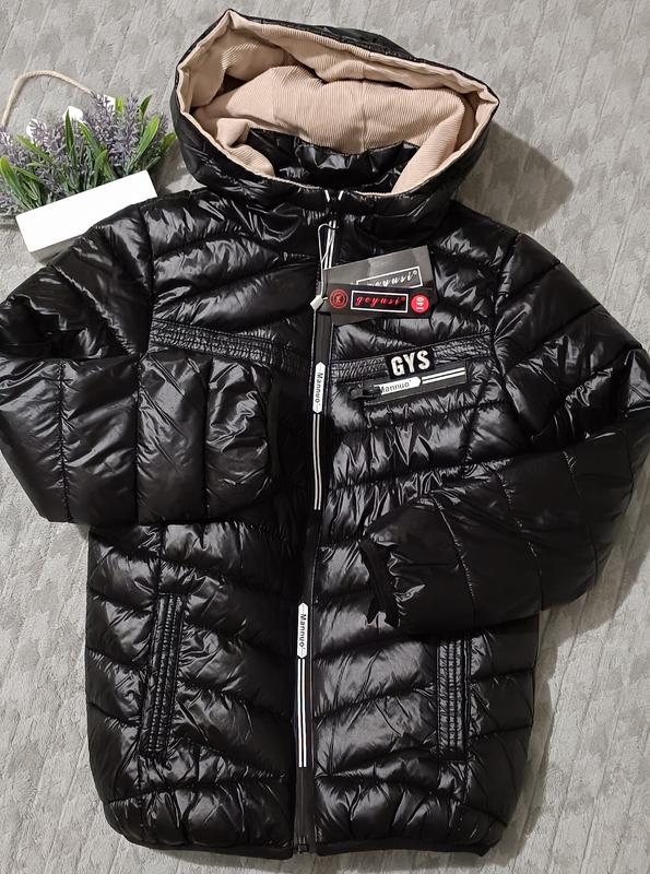 Нова. Не подходит размер. Качественная куртка с капишоном весна/осень. Синтепон. Подкладка нейлон. Плащевка защита от ветра и дождя. Застежка замок, по краю рукава и низу резинка. Есть карманы. Плечи 33, полуобхват груди 37, рукав от плеча 45, спинка 50.